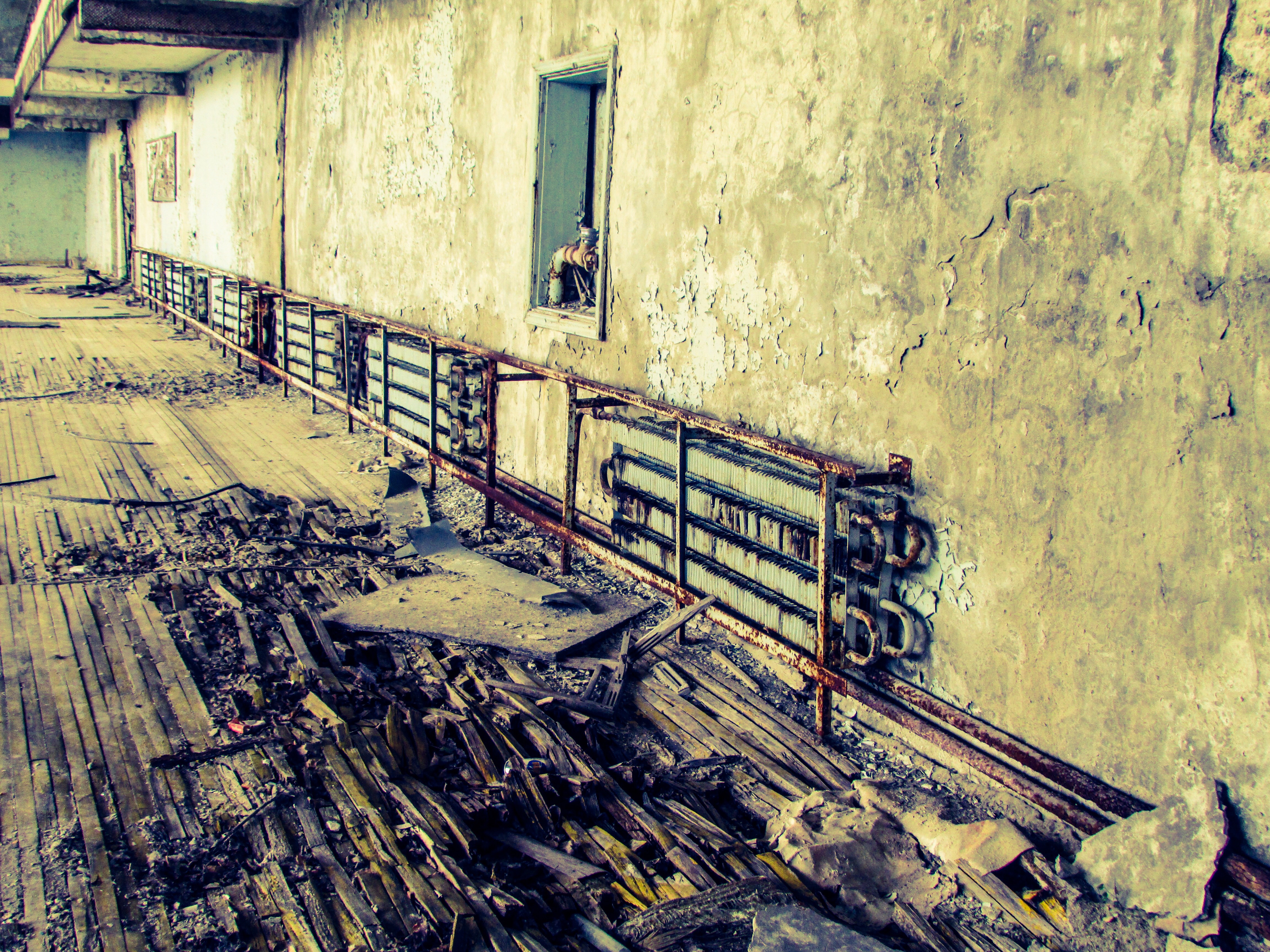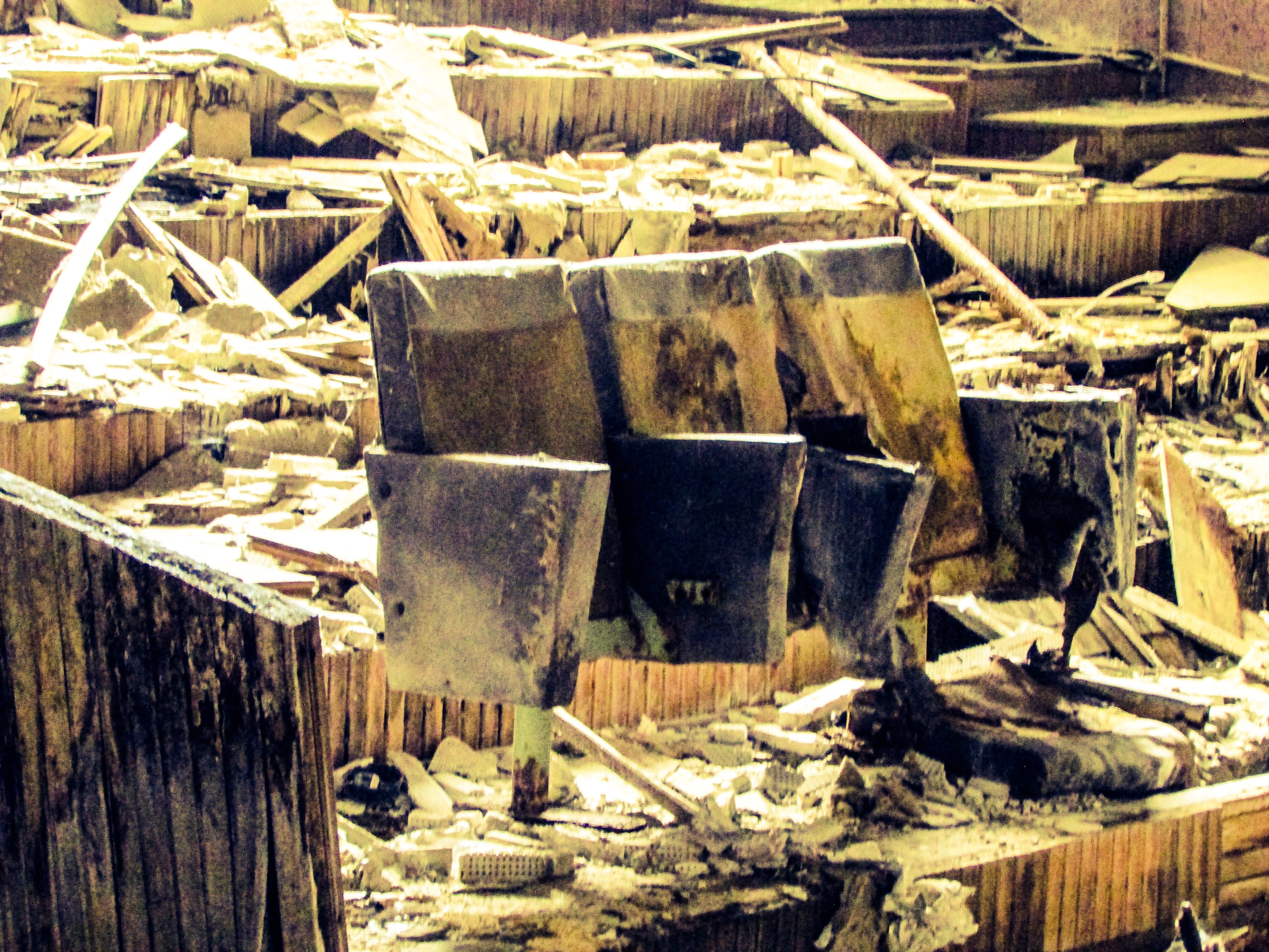 Inne i bygningen er det meste ødelagt av vær og vind gjennom 29 år. Vintertemperaturer på minus 30 og like mange plussgrader om sommeren har gjort sitt med bygningen.