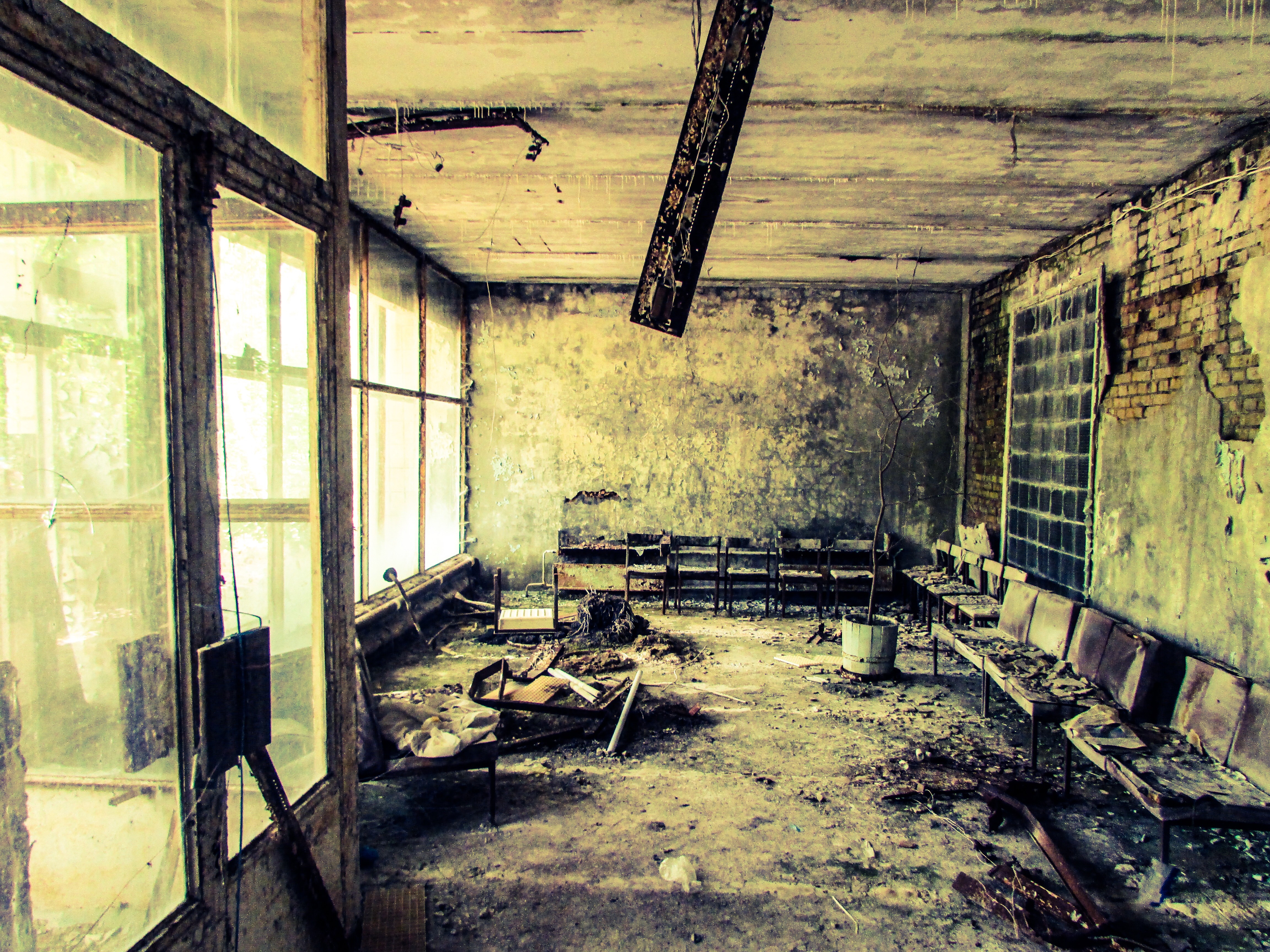 Som ellers i Pripyat er det institusjonene som er mest spennende å besøke i dag. Bolighusene inneholdt ikke så mye mer enn noen møbler, men skolene, kinoene og kafeene var de mest forseggjorte.