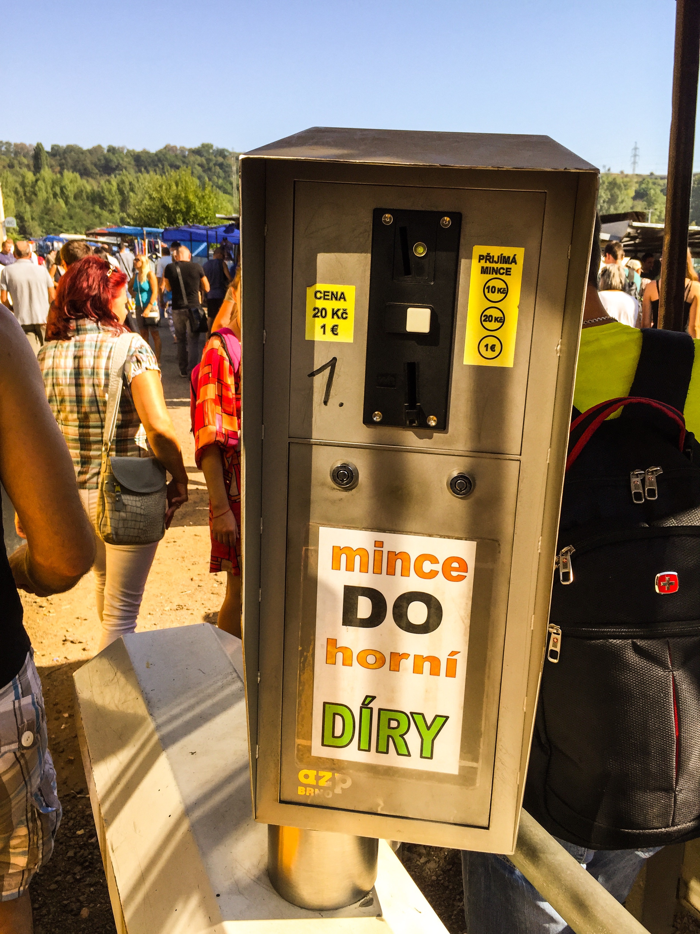 Automaten der man legger på 20 koruna – 7 norske kroner – for å komme inn på loppemarkedet.