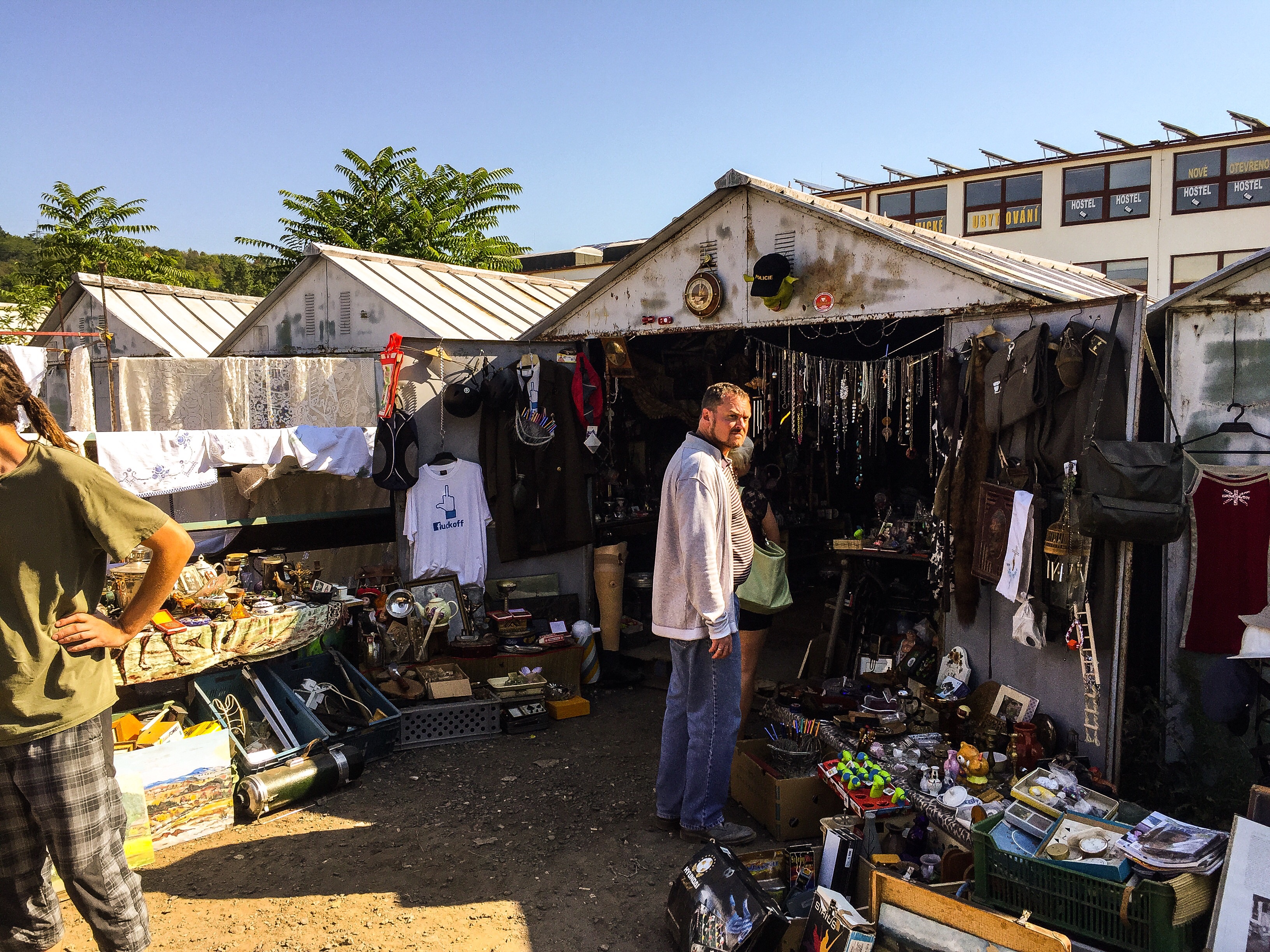 Kolbenova er ikke det peneste stedet i Praha. Området rundt består av nedslitt og nedlagt industri, og selve loppemarkedet er en sandørken på godværsdager og en sølete åker på regnværsdager.