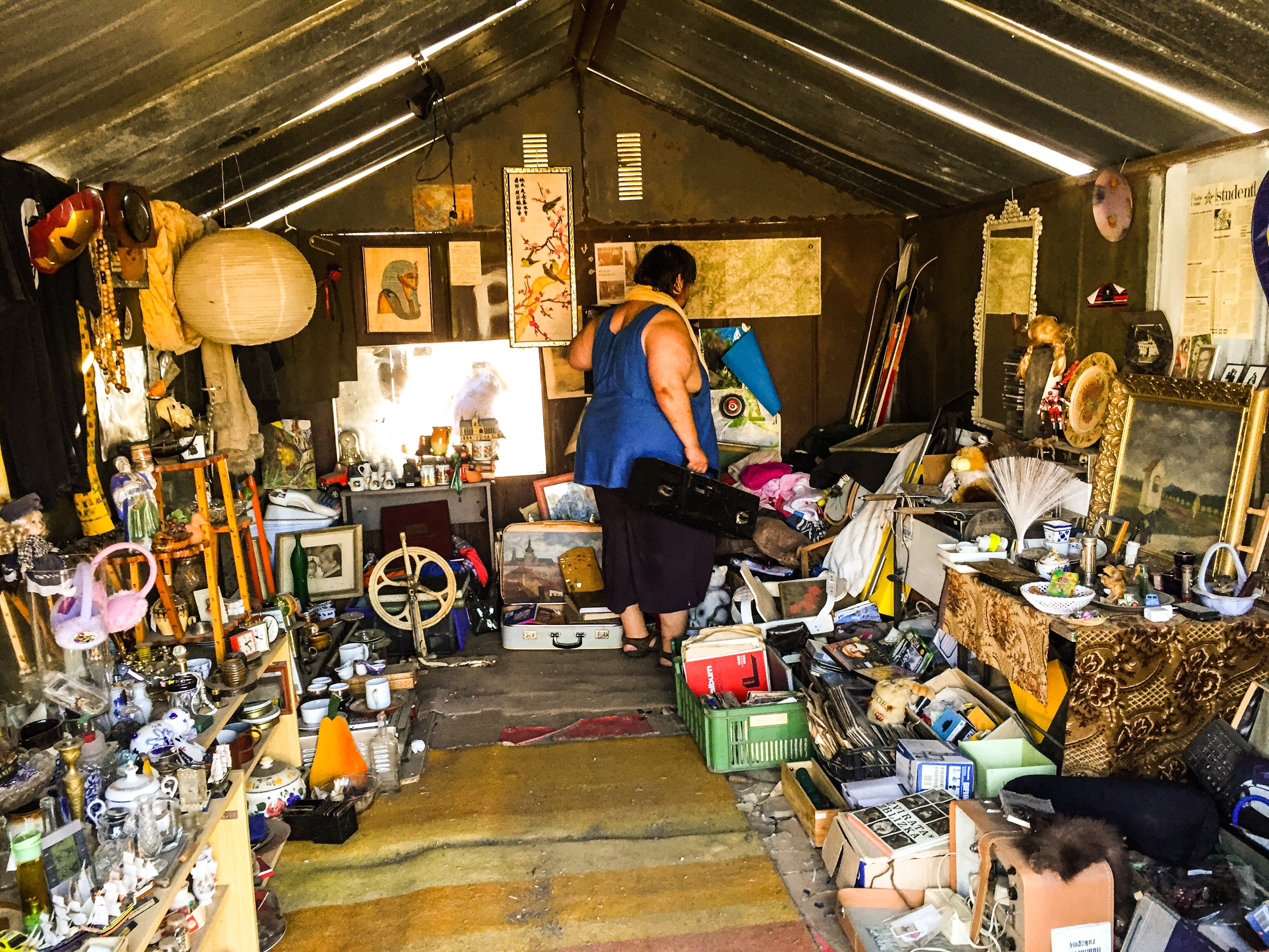 Det meste er til salgs, fra vanlige butikkvarer som vaskepulver, syltetøy og brus, via klær og kjøkkenutstyr til lopper og skrot fra de siste 100 år.