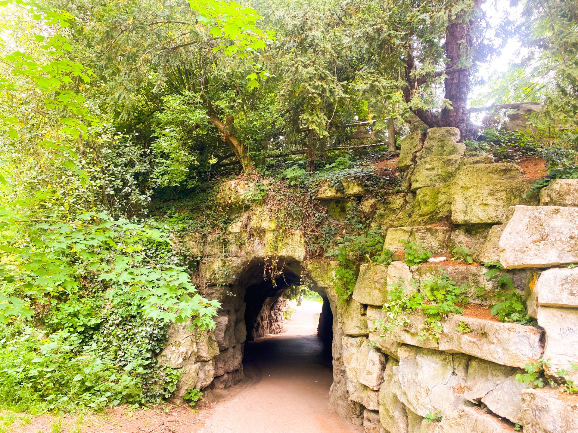 Buttes Chaumont prøver å etterligne vill natur og har huler, fosser og klipper